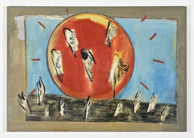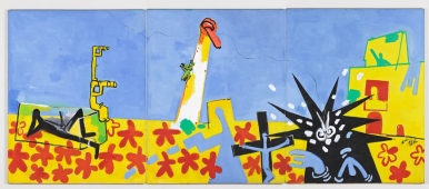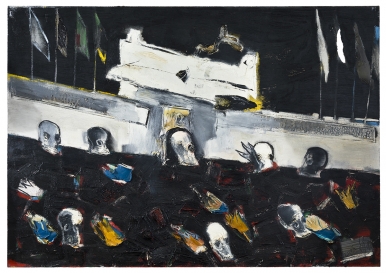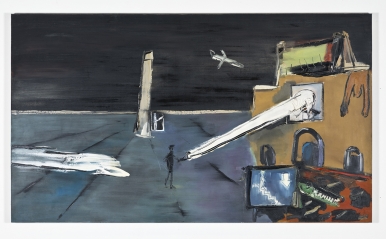 1995년 이후 류봉식 작업의 중심에는 중국 천안문 광장과 그곳의 기념비가 있었다. 그러나 그가 천안문을 다룬 이유는 단순히 역사적 관심에서 비롯된 것이 아니었다. 1993년 베이징 서북부에 위치한 원명원 화가촌에 입주한 작가는 불안과 실험의 시간을 거치며, 전통적인 이미지와는 전혀 다른 방식으로 천안문을 자유롭게 해체하고 단순한 기호로 재구성했다. 이 과정에서 광장 중앙의 기념비 또한 중요한 모티프로 등장했는데, 이는 집단적 상징을 넘어 그 속에서 사라진 개인의 흔적을 드러내는 장치로 기능했다. 류봉식에게 천안문은 정치적 권위의 상징이라기보다 시대의 상처와 인간 내면을 비추는 심리적 공간이었다. 또한 이 시기 작가가 목격한 죽음은 ‘빛’이 단순히 생명과 희망을 드러내는 것이 아니라, 죽음과 부재를 함께 불러일으키는 양가적 개념임을 각인시켰다. 이러한 인식은 작품의 정서적 토대를 이루며, 화면 속에서는 강렬한 색채와 몽환적으로 흔들리는 장면으로 나타나 존재와 부재가 교차하는 불안정한 감각을 시각적으로 드러냈다. 또한 그의 작품에 반복적으로 등장하는 비행기는 단순한 교통수단의 상징을 넘어, 개인적 기억과 자유에 대한 열망을 함축하는 모티프로 기능한다. 어린 시절 연을 날리던 경험에서 비롯된 비행기는 자유롭게 하늘을 나는 문명의 상징이지만, 그의 화면에서는 종종 권위적 건축물 위를 가로지르며 긴장감을 형성한다. 이러한 상징들은 그가 현실의 억압을 직접적으로 드러내기보다, 은유적이고 시적인 차원에서 인간 내면의 불안과 갈망을 표현하는 독창적 방식을 보여주고 있다.