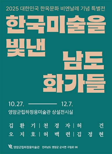 영암군립하정웅미술관(군수 우승희)은 10월 27일부터 12월 7일까지(42일간) 미술관 상설전시실에서 ‘2025 대한민국 한옥문화 비엔날레’ 기념 특별전 「한국미술을 빛낸 남도화가들」을 개최한다.