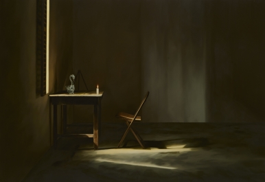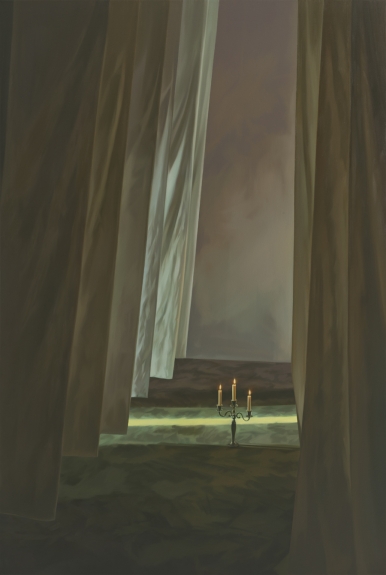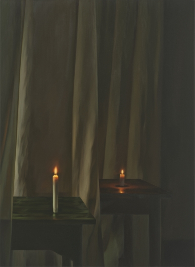 정보영의 작품 속에는 대개 인물이 등장하지 않는다. 텅 빈 공간 속 열린 창문과 펄럭이는 커튼을 비롯하여 촛불, 의자, 유리구슬, 오르골 등 누군가 있었음을 암시하는 오브제들이 그려져 있다. 정보영의 회화 속에 등장하는 사물은 특정한 상징이나 도상학적 의미를 지닌 것이 아닌, ‘존재’의 ‘부재’를 알리는 지표(index)로 그려진 것이다. 또한 정보영의 작품에 자주 등장하는 촛불은 텅 빈 공간을 밝히는 존재이기도 하지만, 놓인 자리에서 자신에게 주어진 시간만큼 타다가 꺼질 운명으로, 시간의 흐름 즉 삶의 유한성을 내포하기도 한다. 정보영에게 촛불은 “빛과 어둠을 모두 감싸 안는” 존재이다.
