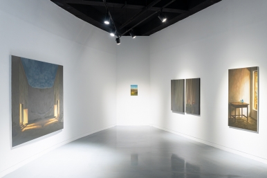 재현의 층위에 대한 회화적 유산이 계승된 정보영의 <벨라스케스의 아틀리에(The Atelier of Velázquez)>(1995)는 이번 전시의 주제와도 연결되는 작품으로, ‘그림 속의 그림’이라는 형식을 통해 재현 회화에 대한 시각적 지층(optical strata)을 작업 초기에서부터 명료하게 쌓아가고자 했던 작가의 예술 의지가 반영되어 있다. 이 작품은 1997년 첫 개인전에서 발표된 이래 25년 만에 처음으로 다시 공개된다. 이와 함께 이번 전시의 주축을 구성하는 작품은 정보영의 신작 <어떤 조망 A certain view>(2025) 시리즈로, 2007년부터 꾸준히 선보이고 있는 작가의 대표적인 연작 회화이다. 빛에 대한 작가의 상상이 더해진 그림 속에서는 어느 것이 실재하는 공간인지 알 수 없다. 오직 그림을 바라보는 '어떤 조망'만이 존재할 뿐이다.