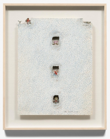 Bull’s Balls, 1970, Paper, thread, wooden frame, 31 × 25 × 2.5 cm