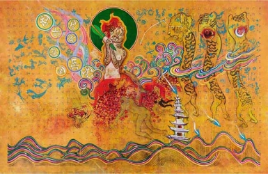 민족 심성의 바닥에 길어올린 말토리들이 작품의 바탕이 된다. 민족미학, 민중미학이 애써 불러온 미학과는 사뭇 다르다. 신화, 전설, 민담 같은 것에서 비롯한 토리들이 나와 세상을 들여다 듣고 알아차리는 바탕으로 꿈틀거린다.