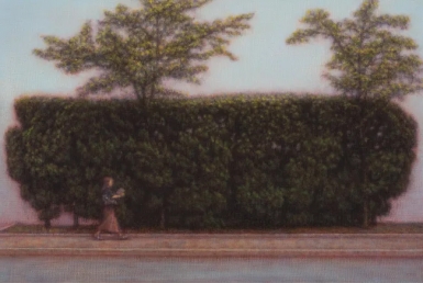 His landscapes exist at the boundary between reality and unreality, the everyday and the extraordinary. They are familiar scenes that nevertheless contain something elusive something not easily articulated. His working process, in which he repeatedly builds and paints layers of color, becomes a form of time accumulation and sensory excavation, as though he is engaging in a quiet dialogue with his subject. The thin, transparent layers of pigment on the color fields do more than form a surface; they embody emotions and memories from an invisible world, adding resonance and depth to her paintings.