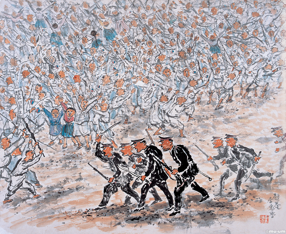 3.1운동_ 한지에 수묵담채, 50x61cm, 1945, 개인소장