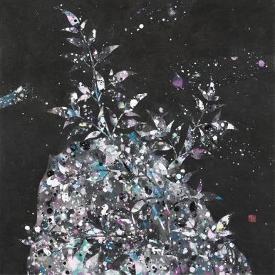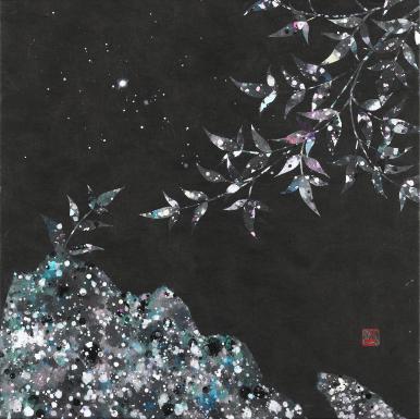 바람숲, 장지에 채색한지, 안료, 30x30,4cm, 2025