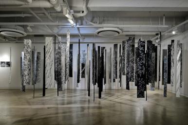 고요의 온도, 장지에 채색한지, 안료, 각150x20cm,150x10cm, 가변설치,2025