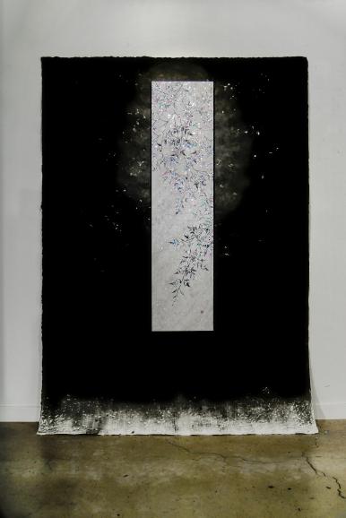 바람숲, 장지에 채색한지, 안료,138x30,4cm, 2025