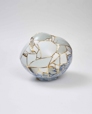 Translated vase 2022 TVKW 6, 2022, ceramic shards, epoxy, 24k gold leaf, 29.5x32x29.5cm