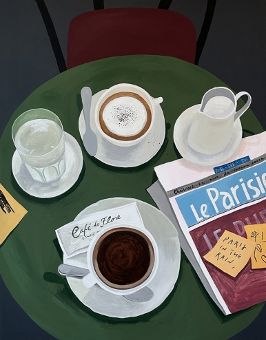 Ordinary days_ Cafe de Flore, 2023, Acrylic, Maker Pen on canvas, 145.5x112.1cm