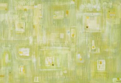 그러니까 이 붓질은 바탕에 칠해진 특정 색이나 흔적을 뒤덮거나 메꾸거나 혹은 드러내기를 거듭한다. 안개와도 같이 배경을 가리면서 화면 너머를 암시적으로 펼쳐내거나 바닥에 자리한 것들을 시야에서 배제시킨다. 동시에 여러 번 칠해서, 긁어서 생긴 그 생동감 있는 붓질, 자취는 화면에 생기를 안겨주고 동적인 흐름을 생성시키는데 이 자유롭고 유동적이며 활달한 선의 자취는 화면 위에서 유영하는 작가 마음의 흐름을 고스란히 연상시키면서 밀고 나가고 있다. ■ 박영택