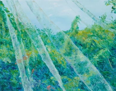 작가에게 풍경은 재현과 추상의 사이에서 경험되는 공간의 장이며, 이는 가스통 바슐라르가 말한 ‘시적 공간’의 개념과도 연결된다. 바슐라르에게 공간은 물리적 장소가 아니라 감각과 기억이 스며들며 새롭게 생성되는 경험의 장으로, 자연을 바라보는 순간 드러나는 가까움과 멂, 가려짐과 나타남의 관계 속에서 단순한 배경이 아니라 존재가 잠시 머무는 자리로 전환된다.