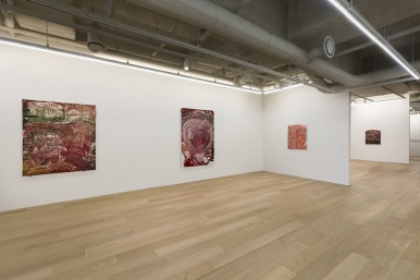 가나아트 한남과 가나아트 남산, 두 공간에서 동시에 진행되는 이번 개인전은 서로 다른 접근을 통해 작가의 예술세계를 입체적으로 조망한다. 가나아트 한남에서는 자연에서 포착된 이미지를 바탕으로 한 회화 작업을 중심으로 구성되며, 대형 작품부터 소품에 이르기까지 다양한 규모의 작업이 함께 소개된다. 거대한 화면에는 다양한 유기체들이 한데 얽혀 펼쳐지는 반면, 작은 캔버스에는 단일한 자연물이 밀도 있게 담긴다. 한편 가나아트 남산에서는 신체의 외부, 즉 타자와의 관계 속에서 형성되고 인식되는 존재로서의 신체에 주목한다. 성별을 특정하기 어려운 신체가 단편적으로 제시되거나 분리된 채 부유하는 형상으로 등장하며, 이는 특정한 인물을 넘어 신체 자체가 하나의 관계적 존재로 드러나게 한다. 이와 함께 선보이는 드로잉 작업은 연필과 수채의 가벼운 필선으로, 회화의 물질적 밀도와 대비를 이룬다. 두 공간은 신체 내부의 감각과 외부에서의 관계라는 서로 다른 층위를 따라 전개되지만 경계가 흐려지는 그 지점을 향한 가와우치의 시선은 일관되게 나타난다.