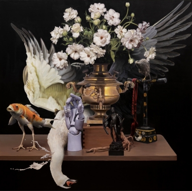 In the new series unveiled in this exhibition, Lee reframes still life within the conceptual framework of the Cabinet of Curiosities. Objects no longer appear as isolated subjects but as elements of a curated collection shaped by the artist’s contemplation, taste, and acts of selection. In Fish with Webbed Feet and Swan’s Head and Ranunculus, the curved neck and wings of a hunted bird echo the shape of a withering flower, suggesting the fragile boundary between vitality and decay. The fish, seemingly drawn from the abyss of emotion, emerges as a hybrid presence suspended between reality and imagination. Much like medieval bestiary, illustrated books from the Middle Ages that described real and imaginary animals, sought to comprehend the world by merging the real and the fantastical, Lee’s paintings likewise function as spaces where reality and illusion intersect. Through meticulous observation, Lee’s works reveal the accumulation of time. Subtle shifts in petal color under changing light, and the shadows grazing feathers and scales, render visible the passing of time embedded within still forms. Though the objects appear motionless, their surfaces hold layered traces of time and resist fixed definition, gradually transforming into forms reflecting the duration of time. Through this process of transformation, the object moves beyond its material presence. It undergoes an ontological transition, becoming a charged entity infused with the artist’s imagination and conviction. Familiar forms are dismantled and reassembled, reemerging as unfamiliar images that carry renewed meaning.