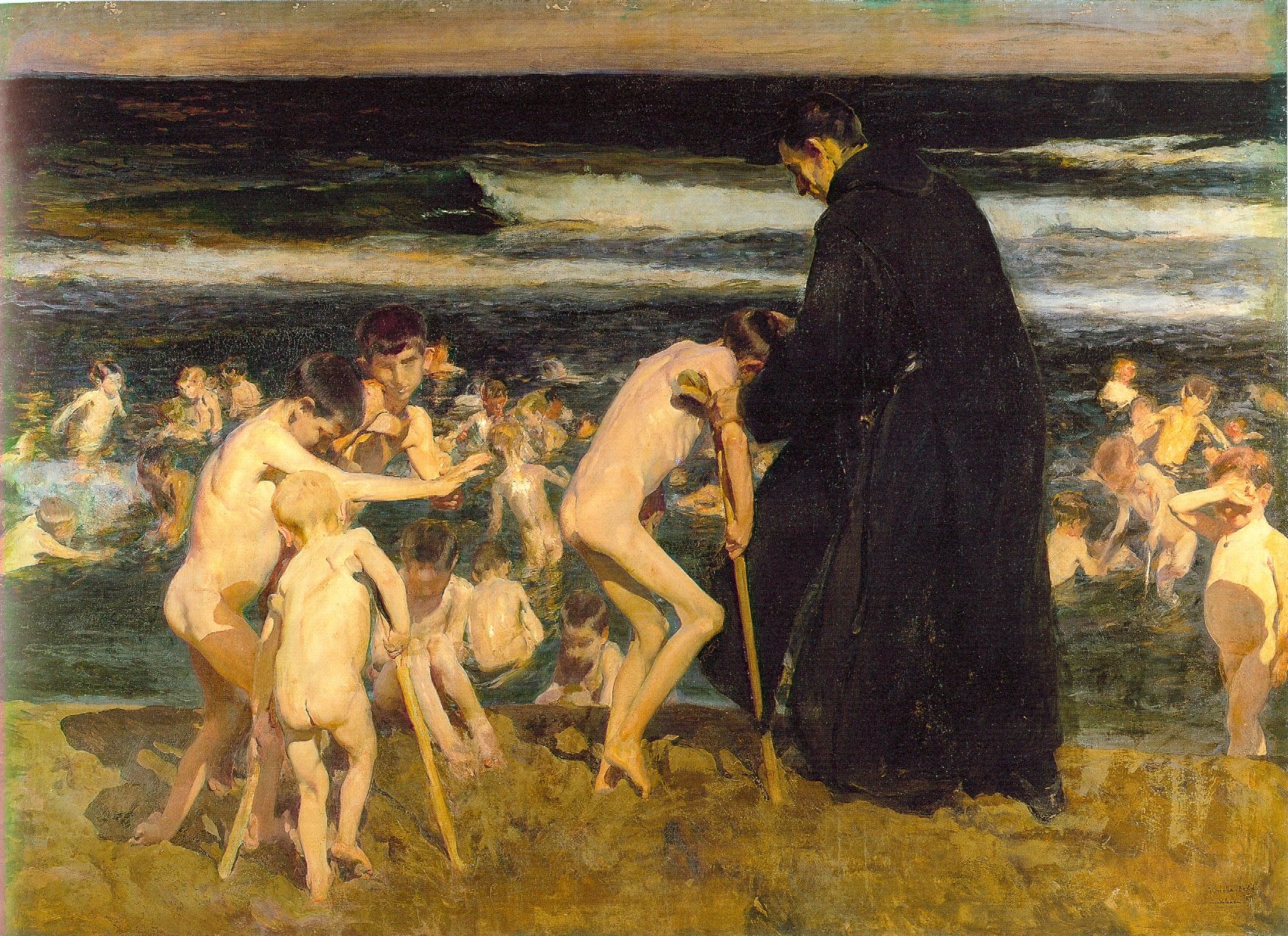 Sad Inheritance, 1899. Crippled children bathing at the sea in Valencia; in the center the image of two children affected by polio (Bancaja Collection).