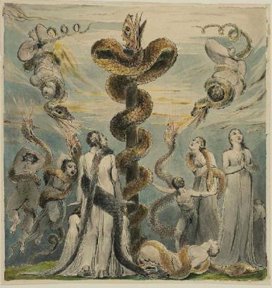 The Whirlwind: Ezekiel's Vision of the Cherubim and Eyed Wheels, Pen and watercolor over graphite on paper, 39.4x29.5cm, 1803-05