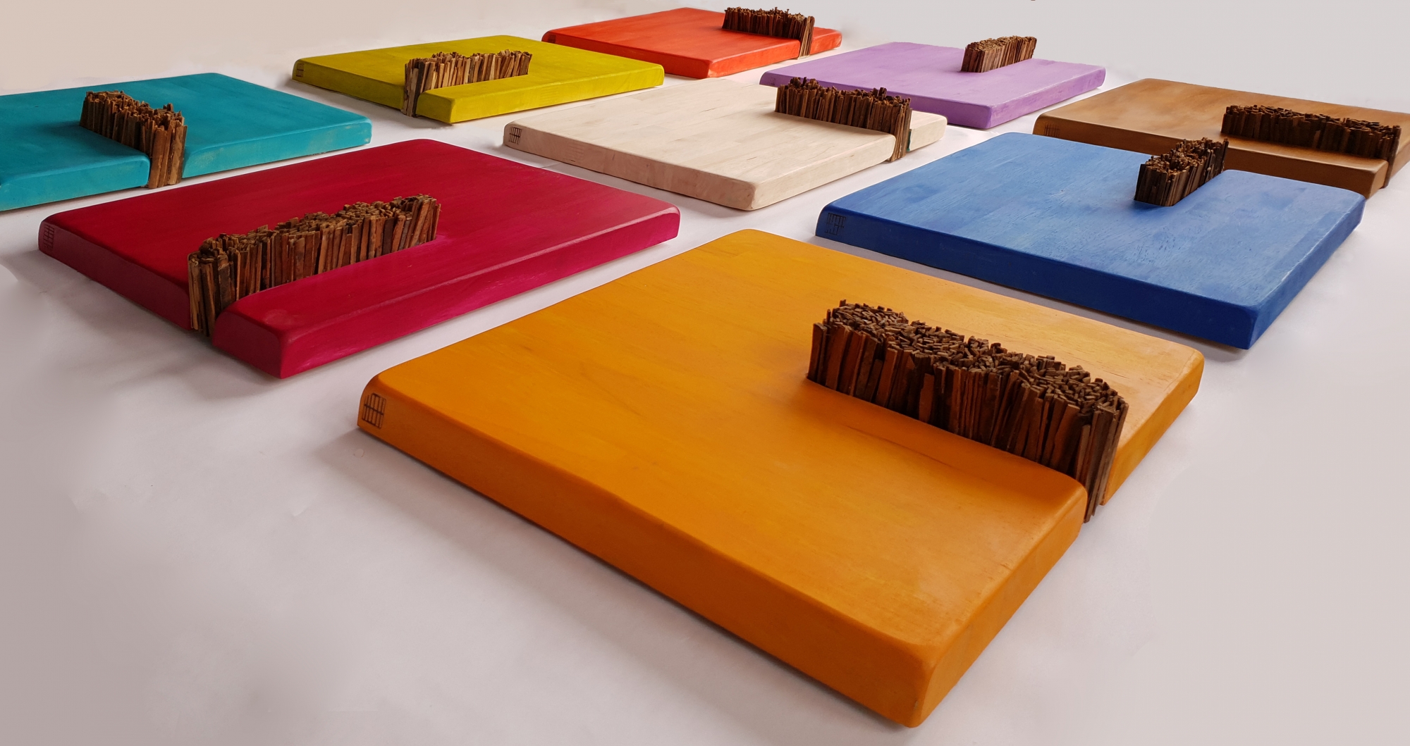 나무;묵상, 나무 채색 후 끌질_18x18x3(cm)_나무 2023