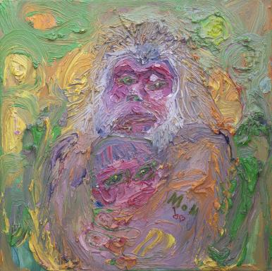 self-portrait, oil and luminous pigment on canvas, 150cm X 150cm, 2023