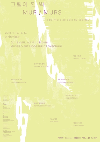 경기도미술관은 2018년 첫 기획 전시로 프랑스 벽화 전시 《그림이 된 벽 MUR / MURS, la peinture au-delà du tableau》을 개최합니다. 프랑스 현대미술가 8인이 전시장에서 직접 제작한 벽화를 선보이는 《그림이 된 벽》전은 프랑스 현대회화의 다양한 면모를 보여주는 전시입니다. 작품의 배경으로만 존재하던 전시장의 벽들은 참여 작가들의 각기 다른 회화적 실천을 통해 작품의 중요한 요소가 됩니다.