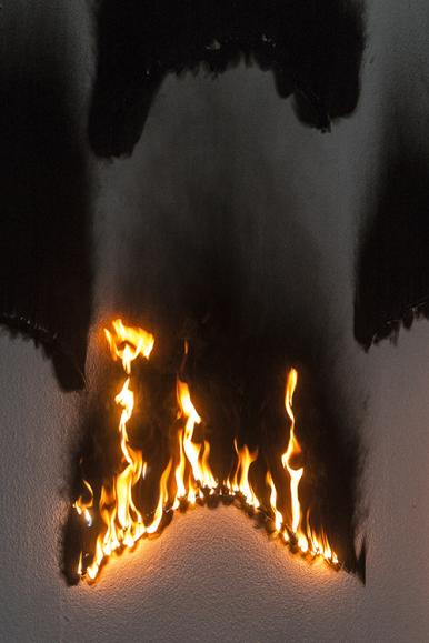 크리스티앙 자카르는 불을 이용하여 벽면에 그을음을 남김으로써 추상적인 패턴을 만들어 낸다. 불의 움직임이 벽과 만나 운율과 리듬감이 있는 추상회화를 새겨낸다. 이는 동굴 벽화와 같은 원시적 회화를 연상시킨다. 연소된 흔적과 그을음으로 가득 채워진 벽면에는 회화의 전통적인 재료라고는 찾아볼 수가 없다. 작업하는 과정에는 물감도 붓도 없으며, 오직 불의 타오름과 소멸만이 반복된다. 작업의 과정에서 도구로 활용되었던 불과 연소성 젤, 그리고 지지체로서의 벽면은 그 자체로 실존하는 작업의 결과물이 된다. 불의 연소과정은 시와 같이 은유적이고 함축적인 방식으로 생의 명멸을 환기시킨다. 불에 타고 남은 젤의 화석화된 흔적과 재로 가득한 벽화는 거스를 수 없는 자연의 섭리를 떠올리게 하거나 타올랐던 순간의 에너지를 환기시킴으로써 제의적이고 숭고한 공간을 창출한다.