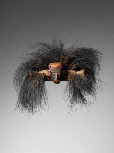 카누 뱃머리 조각, 도가이 (Dugout canoe prow sculpture, dogai)_ 오스트레일리아, 토러스(Torres)해협, 사이바이(Saibai)섬│19세기│나무, 화식조, 깃털,안료│51×60.5×50.0cm, 2984g│케브랑리-자크시라크박물관│70.2001.38.1