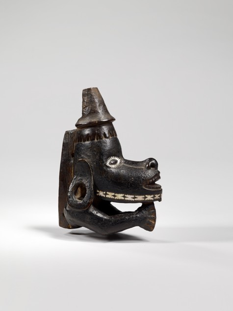 카누 뱃머리 조각, 도가이 (Dugout canoe prow sculpture, dogai)_ 오스트레일리아, 토러스(Torres)해협, 사이바이(Saibai)섬│19세기│나무, 화식조, 깃털,안료│51×60.5×50.0cm, 2984g│케브랑리-자크시라크박물관│70.2001.38.1