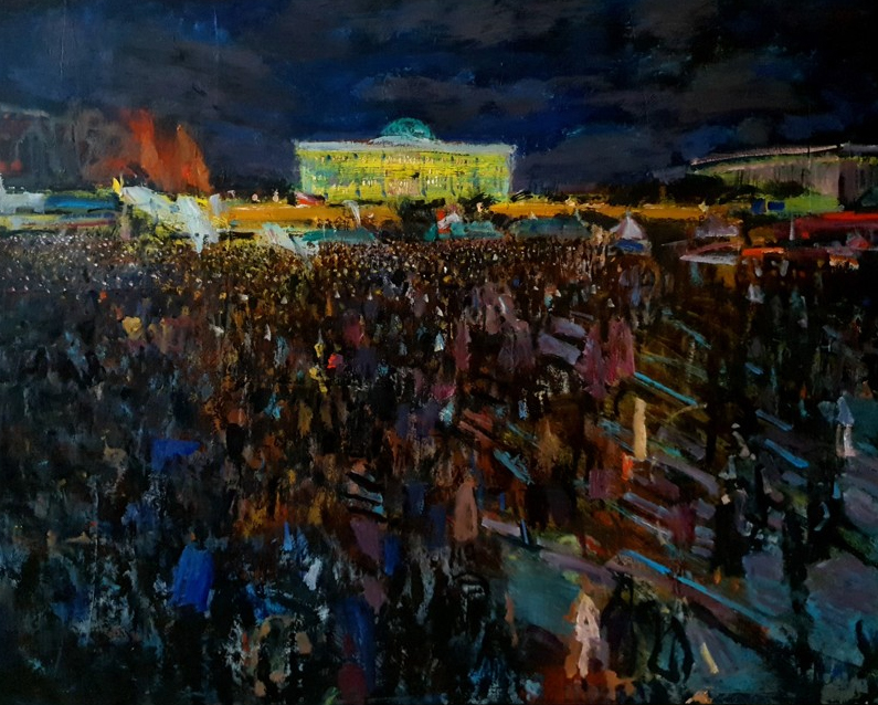 123국회앞 Citizens in front of the National Aeembly blocking the martial law, 캔버스에 유채, 80×100cm, 2025