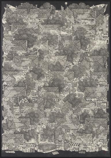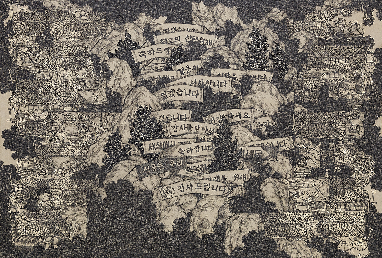 핫플레이스, 이합장지에 흑연, 92x117cm, 2021