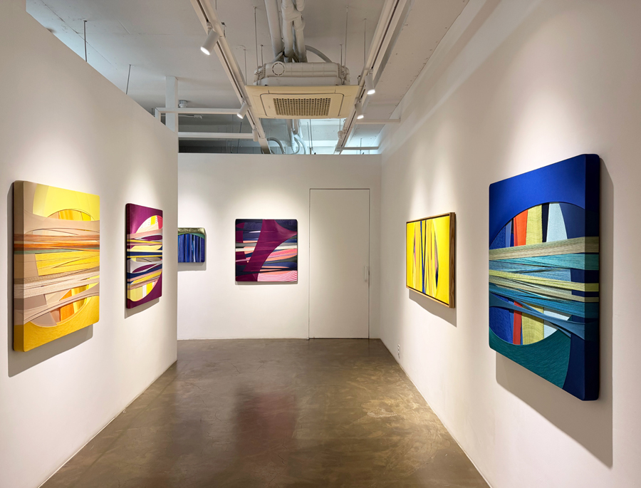 Fabric Drawing#211, 2026, Fabrics (including Korean traditional textiles), thread, wrapped around a frame 91.0x91.0x3cm