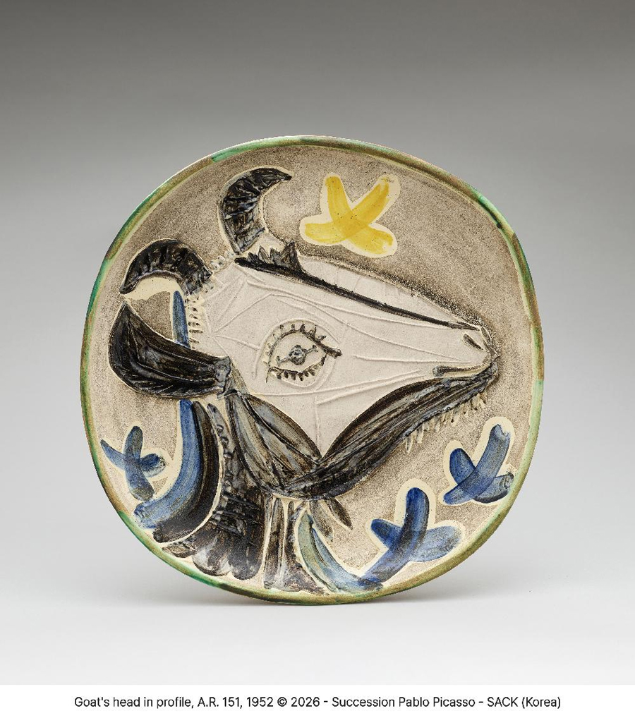 염소 머리, A.R. 151, 1952, 백토, 화장토, 파티나 장식, 부분 유약시유, 40×40×4cm(자료제공: 국립현대미술관)