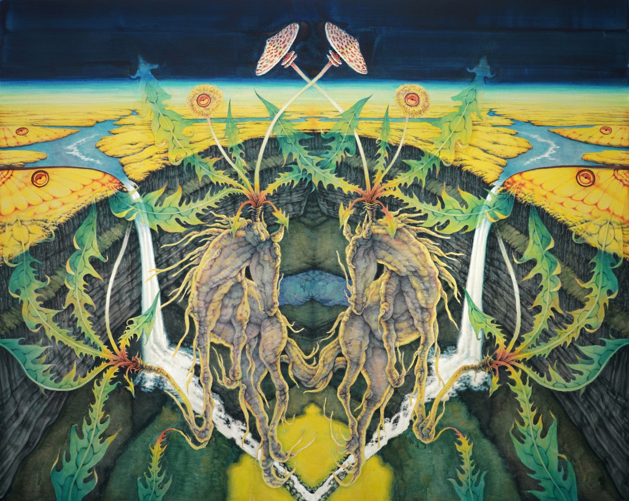 뉴 에이지 나이아가라 2, 2026, 린넨에 아크릴릭 과슈, 색연필, 162.1x227.4cm