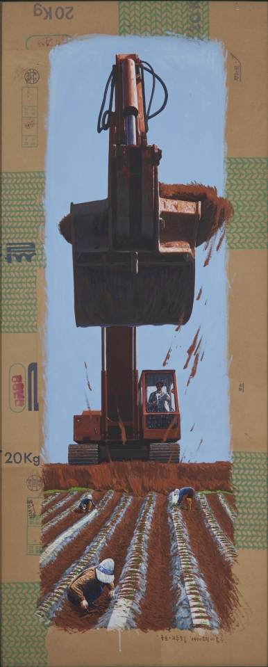 국토-고추모종, 1990, 164×66.2cm, 부대종이에 아크릴릭