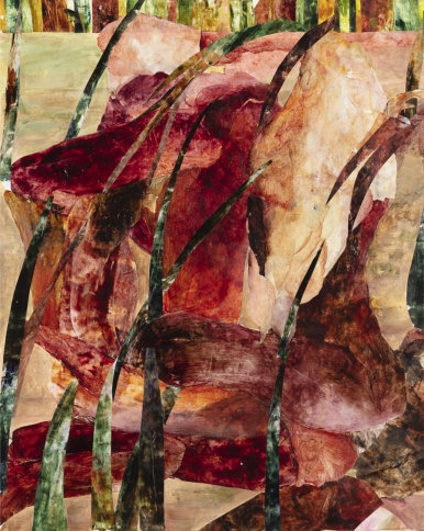베어나가는 것들 Things being Cut away, 2025, acrylic, gouache, Korean paint, collage on Korean paper, 91×72cm
