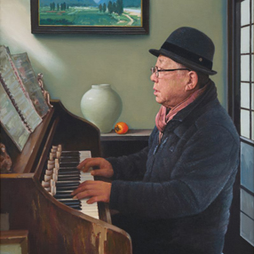 작가는 일상적인 순간 속에서 특정한 인상으로 다가온 이미지들을 콜라주 하여 화폭에 사실적으로 옮기는 작업을 하고 있다. 일상적 풍경이란 평범하고 시끄럽다. 원하지 않는 대상들 또한 파인더에 들어오기 때문이다. 그러나 선택된 이미지들만이 뜨문뜨문 그려진 풍경은 이상하리 만치 조용하다. 느리게 반복되는 붓질의 행위를 통해 부유하는 생각들을 정리하고 스스로의 존재 이유를 찾는다. 고요한 풍경은 이 시대의 이미지 범람과는 대조적이다. 일상적 풍경으로 완성된 이미지는 관객으로 하여금 과거 속에 가라앉은 기억을 환기시키는 동시에 관객으로 하여금 ‘당신이 이곳에 존재한다’라는 감각을 일깨우는 데에 목적이 있다.