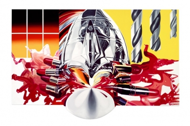 The Swimmer in the Econo-mist , 1997–98, Oil on shaped canvas, 401.3 x 610 cm