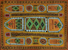 그가 말하니 모두들 잠잠해졌다 He Spoke and All was Still, Oil painting on deer skin, 110x155 cm, 2015